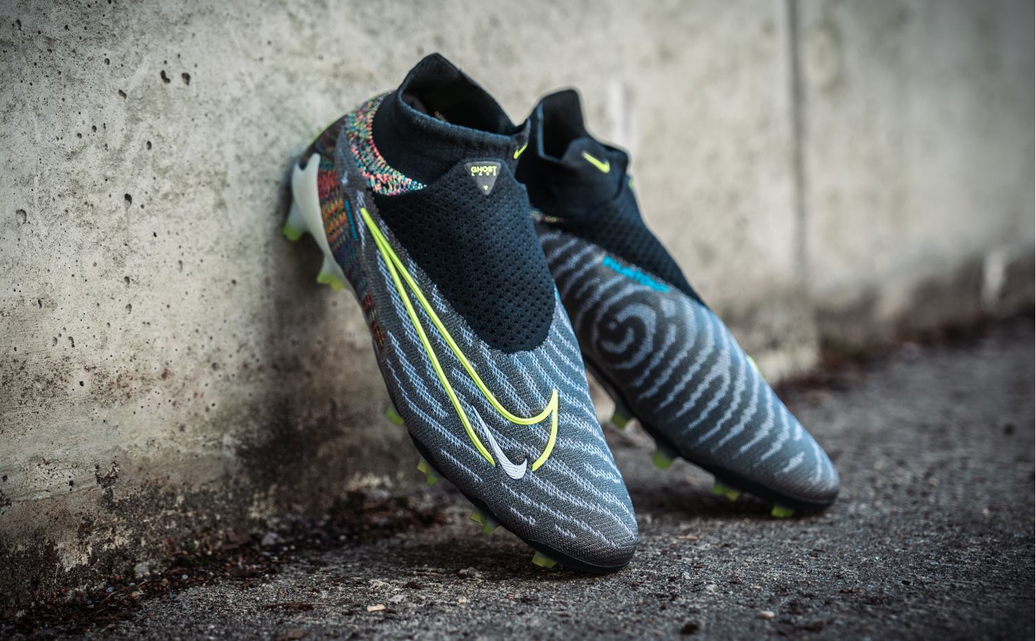 De spelers die met de gloednieuwe Phantom GX het veld betreden zullen direct in het oog springen. Dat heeft alles te maken met de kersverse colorway, welke zeer kleurrijk is te noemen. Onder het zwartkleurige vlak is een levendig patroon te vinden, waarin alle kleuren van de regenboog terugkomen. De designers hebben de functionele kenmerken zoals het Gripknit visueel gemaakt, door bijvoorbeeld het vingerafdrukpatroon op het zwarte vlak dat de sensitiviteit accentueert. De schoen wordt afgemaakt met een creatief verwerkte Nike-swoosh op de buitenkant, in felgeel en wit weergegeven. Op de binnenkant is deze swoosh nog eens te vinden in het roze.